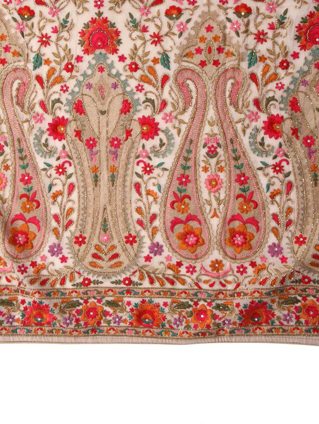Cream Saree in Kashmiri Thread
